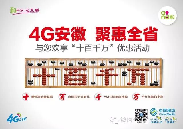 “万份红包等你拿”:安徽移动网上营业厅、微信、微博等多个平台开展的“和4G点亮精彩世界”、“购机晒单,赢全免好礼”和“寻找4G达人”等互动活动,让万份流量红包和百部免费IPHONE手机为全省客户带来好运。